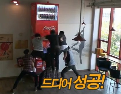 웃는 모습이 너무 이쁜 닉쿤의 넘 이쁜 미소 캡쳐 성공요.2pm 숙소에 대따 큰 자판기를 세웠대요.저 안에 꽉 탄산으로 가득찬 걸까요.