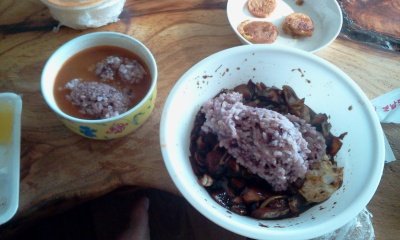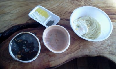 5. 면을 다먹은후 전자레인지에서 사우나를 마친 밥님을 짬뽕국물과 남은 짜장에 넣어줌
