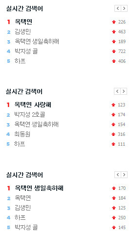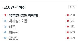 검색어 1위 됬어요 ㅎㅎ 저희 핫티가 이번에 옥택연생일축하해를 택연 생일에 실시간 검색어 1위가 되자 라고 목표새웠는데 이루어 졌네요 ㅎㅎ 오늘 정말 기분 좋은거 같아요 ㅎㅎㅎㅎㅎㅎㅎㅎㅎㅎ