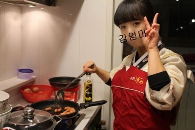솔파의 장소를 제공해준 고마운 여자 12호가 비엔나소시지를 요리중임