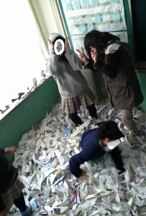 결국 방학식날 교실에 깔앗음