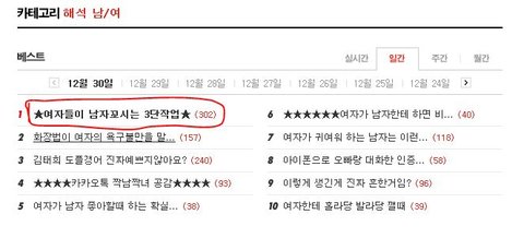 그리고 자꾸 얼굴드립이라고 하시는분들 계시는데...솔찍히 제가 얼굴을 바꾸라고는 안했자나요 외모드립이라면 조끔 뜨끔할수도있는데 게을러보이지는 말자 이거지 평범한외모에 나한테 노력하는 착실한 여자가 더 매력있습니다. 남자도 외모 그렇게 안봐요 빠돌이보다 빠순이가 더 많지않나...ㅋㅋㅋ;;;그러니 일부만보고도 남자는 외모만 본다고 굳어진 사회적 현실이 슬프네요 외모 좀 딸린다고 주눅드신분들 힘내세요~~!!당신을 좋아해주시는 분이 생길꺼에요.