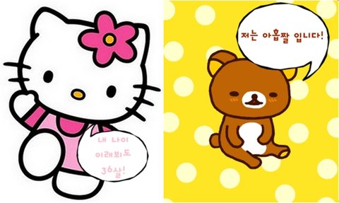 먼저 두 캐릭터의 나이를 볼까요? 1976년 일본 산리오에서 만들어진 헬로키티는 우리나이로 36살이 되는군요! 엄청난 동안(?)이 헬로키티 인기의 비결일까요? ㅎㅎ