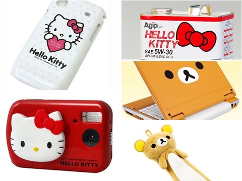이렇게 인기가 많은 헬로키티와 리락쿠마를 이용한 캐릭터상품도 무척이나 많답니다. 필통, 카메라, 핸드폰 케이스 같은 평범한 캐릭터상품부터 헬로키티 엔진오일(!)이나 리락쿠마 노트북(!) 처럼 캐릭터 상품이 잘 쓰이지 않는 분야도 진출했을 정도죠.