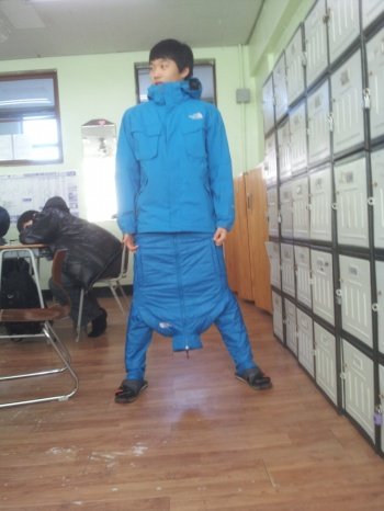 근데 옆에서 친구도 자신의 내피를 분리하기 시작함