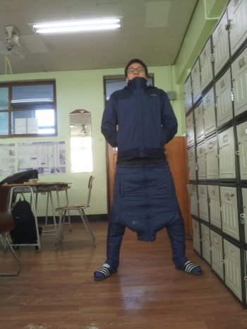 글쓴이는 네이트판 빠돌이여서 노스패딩 바지를 본게 기억이나서 패딩을 막 뒤집어입었음