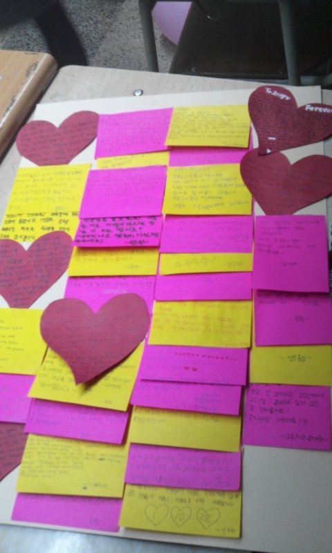 우린 일단 며칠전 부터 준비했던 롤링페이퍼를 꾸몄음 !! 뙇 !!