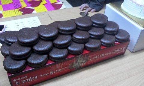 빅스케일의 초코파이 케잌을 준비했음 !! 멋지지않음? 호호호 ![]()