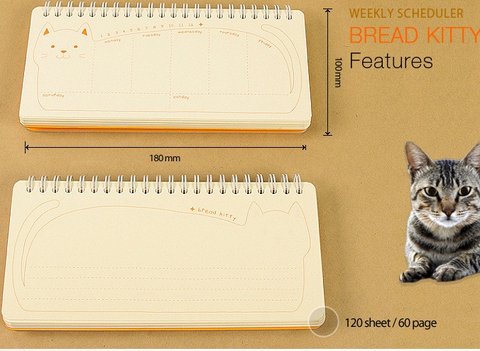 고양이일러스트가 그려져있는 위클리플래너랍니당~ 뒷면엔 날개받침대가