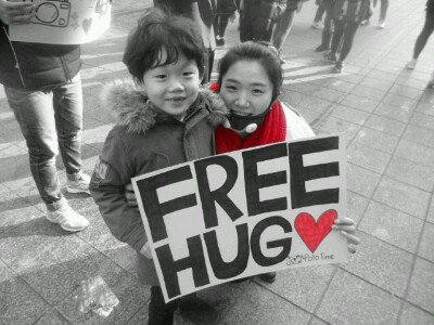 "Wow ! free hug ~?!" 하면서 안아주신분들이 대부분
