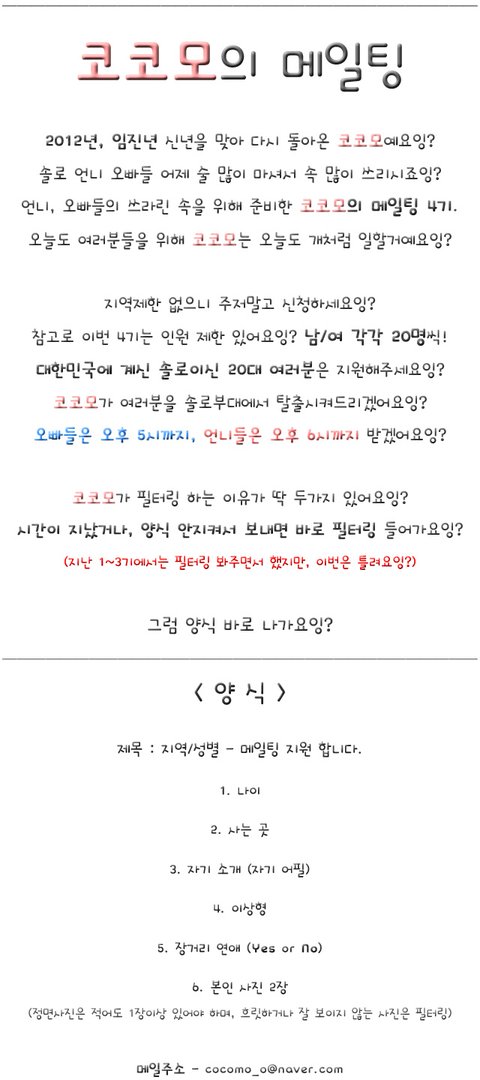 양식 복사해서 이용하시고, 메일은 위에 주소로 보내주세요. ![]()