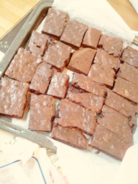 그러는 사이 오븐에 구운 첫 브라우니가 탄생했음