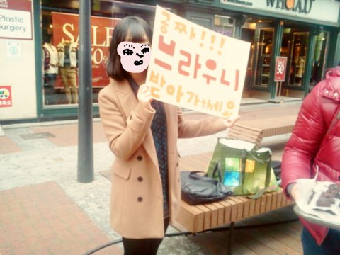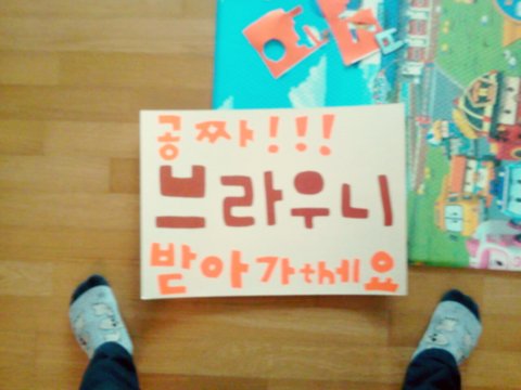공짜브라우니 가져가세요 라고 쓸 피켓을 만드는중임