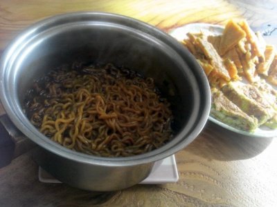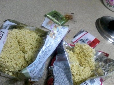 라면으로 허기를 달랜다며 생각함