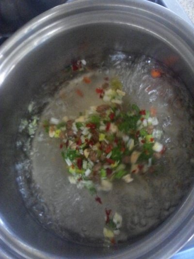 4.물이 끓으면 야채스프를 다같이 넣음