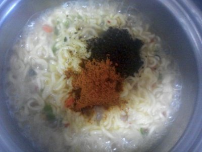 7.면이 다 익으면 스프들을 넣어줌
