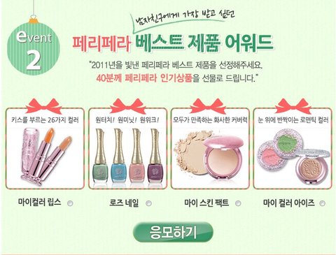 둘, 2011년을 빛낸 페리페라 베스트 상품 선정! 투표형식이라 완전 간단!ㅋ