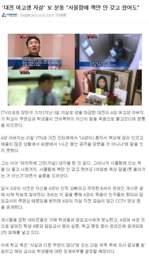 ( 대전 여고생 자살 사건 친척오빠의 글 )