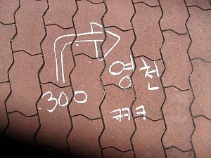 애벌레 놀이하다 땅에 적혀있는 이정표를 발견했음!!