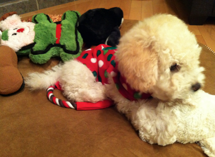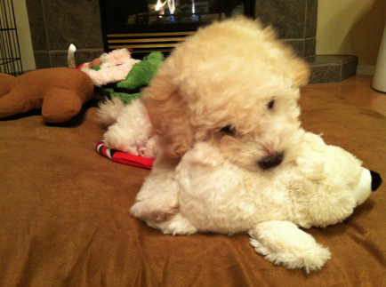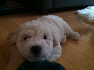 2011.09.11 에 Bichon 이랑 Mini Poodle 사이에서 태어난 귀여운 Bichon poo 라고 해요.