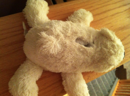 저때 부터 하얀 곰인형을 자주 물고다니더니 ...