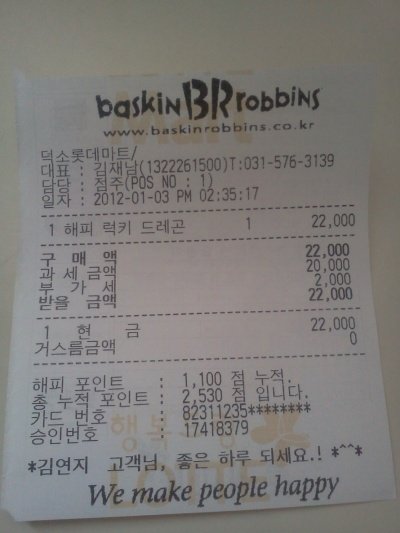 그대신 영수증!ㅋㅋ