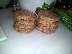 소고기+돼지고기+소금+후추+빵가루+계란+마늘+양파+당근 해서 치대고