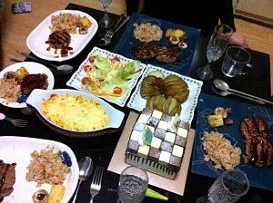 1.샐러드 2.아코디언 감자구이 3.옥수수그라탕 4.볶음밥 5.함박스테이크 6.까나페