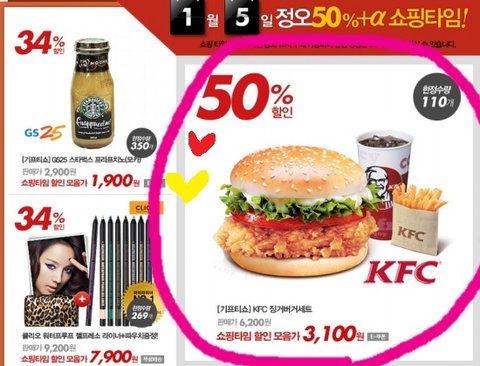 11번가에서 굿타임 정오 12시 깜짝 쇼핑하는데 ,KFC 징거버거세트 50%래요~