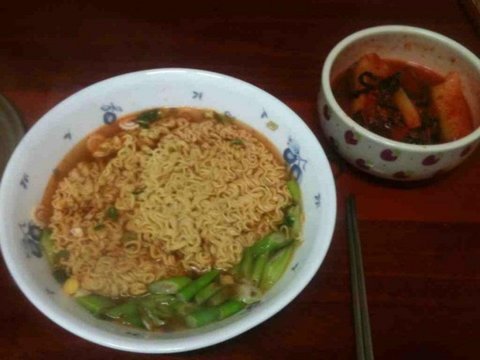 이샠히 컵라면을 이용한 얼큰한 라면을 만들어냄