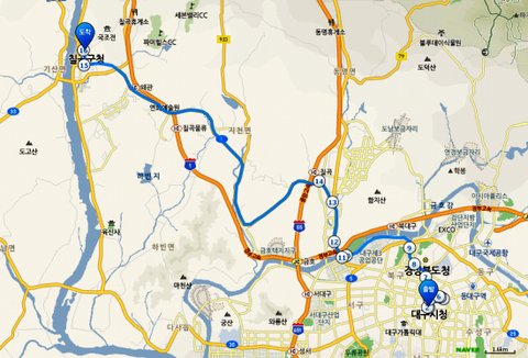 그리구 오늘은 대구에서 있고 내일 다시 대구에서 칠곡까지 걸어가요.