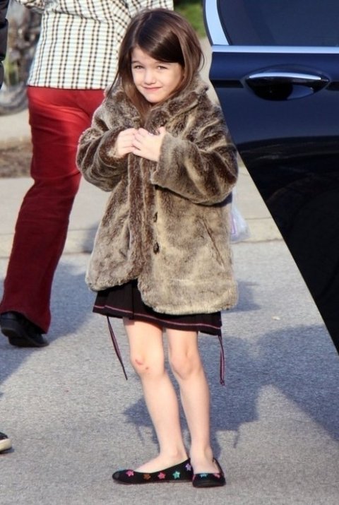 첫번째 주인공은 톰과 케이트의 예쁜 딸내미 수리! 모피코트에 리본 디테일의 플레어스커트,