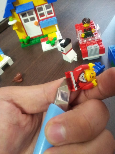 나는 내 귀의 청결을 돕는 저도구의 뒷부분을 희생해서 레고여성의 가발에 구멍을 뚫음!!
