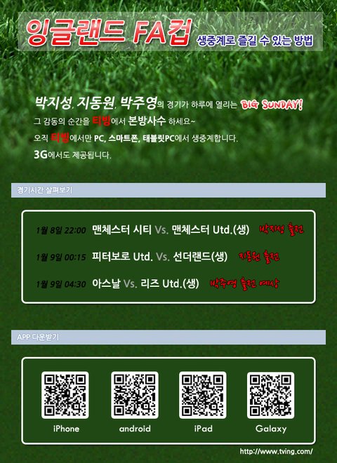 오늘(1/8) 저녁 8시에 박지성 선수가 출전하는