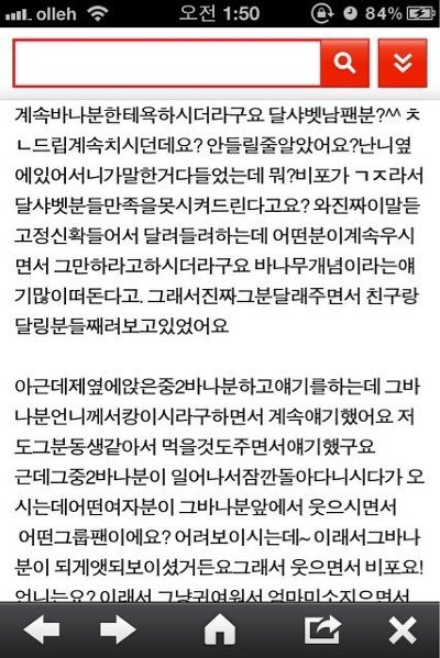 어떤 언니 캉분이랑 동생 바나분이 갔는데 어떤 달링이 두사람보고 팬덤뭐냐고묻길래 언니가 캉이라말하고 동생이 바나라하니까 바나분보고보고  " 조카 싸가지없네 씨2발 " 라고 했다합니다..ㅜㅜ