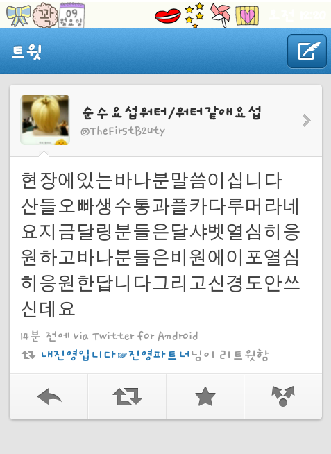 어제 달샤벳과 b1a4 큰논란이 일어나면서  이일이생겨난거같은데요 하지만그일은 몇몇 개념달링들이 사과문을올리길래 바나 넘겼다합니다 그런데도 이일이생겨났다는건...후...