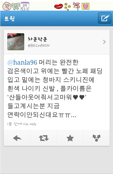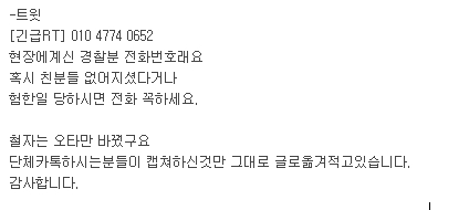 이글에 앞서 다행인건 찾아지는 사람들이많다는 점이구요 문자사건의 주인공도 찾앗다고 하네요 그부분의 글은 내리도록 하겠습니다.