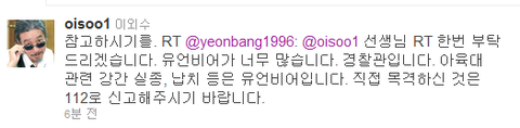 현재 저희 누나분들 중 한 분이 폭행당한 상태로 발견 되신 거 사실입니다. 절대 루머 아니에요.