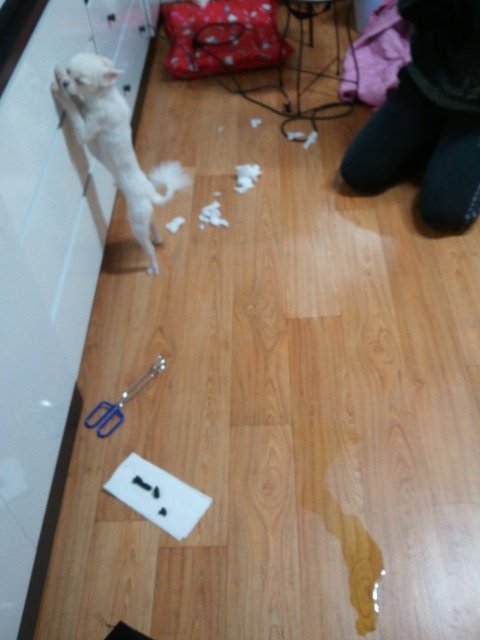 잠깐 갔다오는거라 배변통을 안넣어주고 방문을 닫고 나갔다왔음