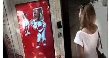 유럽 어떤 회사에서 만든 공짜 아이스크림 기계에요! 저기 화면에 얼굴을 비치고