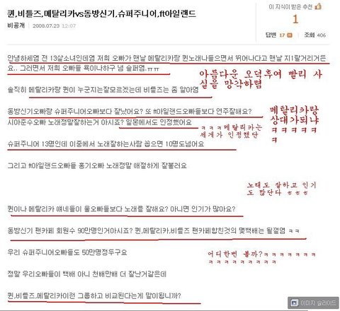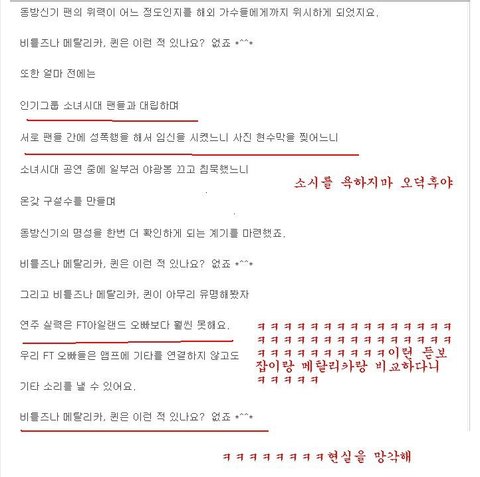 어느 철없는소녀의 퀸,비틀즈,메탈리카 vs 슈주,ft아일랜드,동방신기