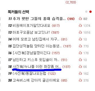 속옷판이 톡커선택20위ㅋㅋㅋㅋㅋ다음날 아침엔 15위까지 했는데