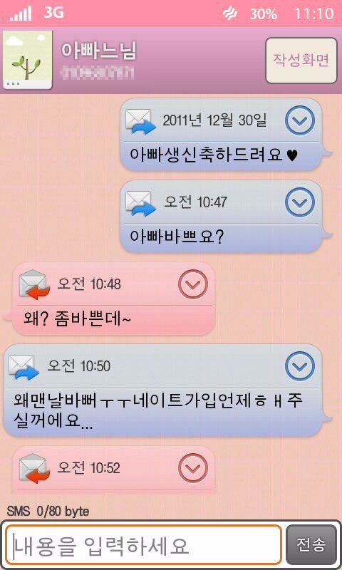 아빠 외모빼곤 뭐든 멋있는 사람입니다 보이심?ㅜㅜ 아빠 보여줄려고 캡쳐해놨는데 엄마가 보여주지 말라고 .. 부탁하심