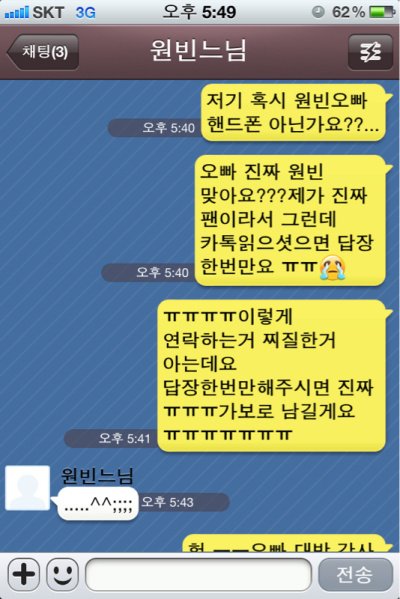 원빈느님이 카톡을봄...그리고...답장이옴!!!!!!!!!!!!!!!!!!!!