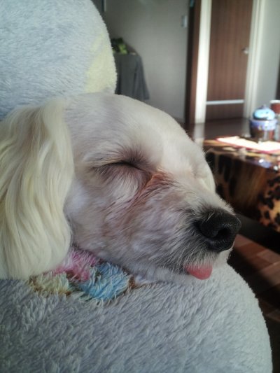 내 무릎사이에서 자는중ㅋㅋㅋㅋㅋㅋㅋㅋㅋㅋㅋㅋㅋ 저 혓바닥 진짜 땡겨버리고 싶을 만큼