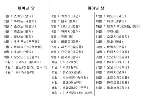 자신의 생월 (성)