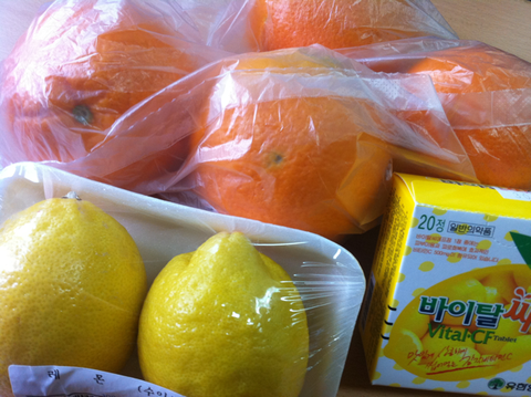 또한..어느 날 저녁 감기기운이 조금 나타나는 것 같다고 카톡을 보내뜸 다음날? 레몬,오렌지,비타민씨를 몽땅 사들고 학교에 사온 것은 별 것도 아니고