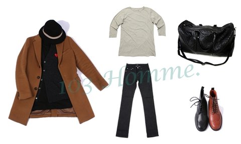 카멜코트 + 꼼데가디건+기본티 + 생지청바지 + 윙탑워커 +보테가크로스백ST