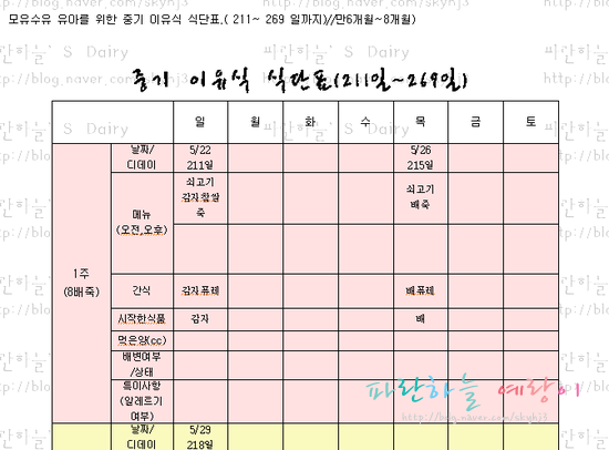 ▼중기이유식식단표다운받기▼