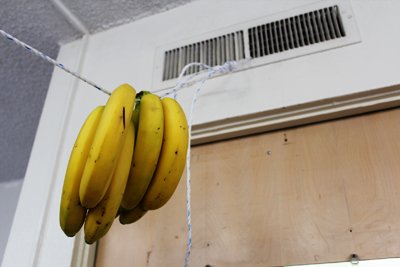 바나나를 빨랫줄에 걸어놨음.